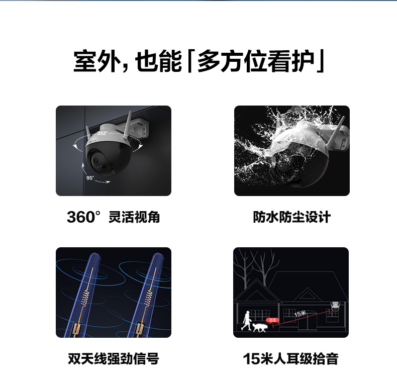 桂林地区萤石C8室外云台360全景无线网络智能摄像头家用手机远程夜视监控